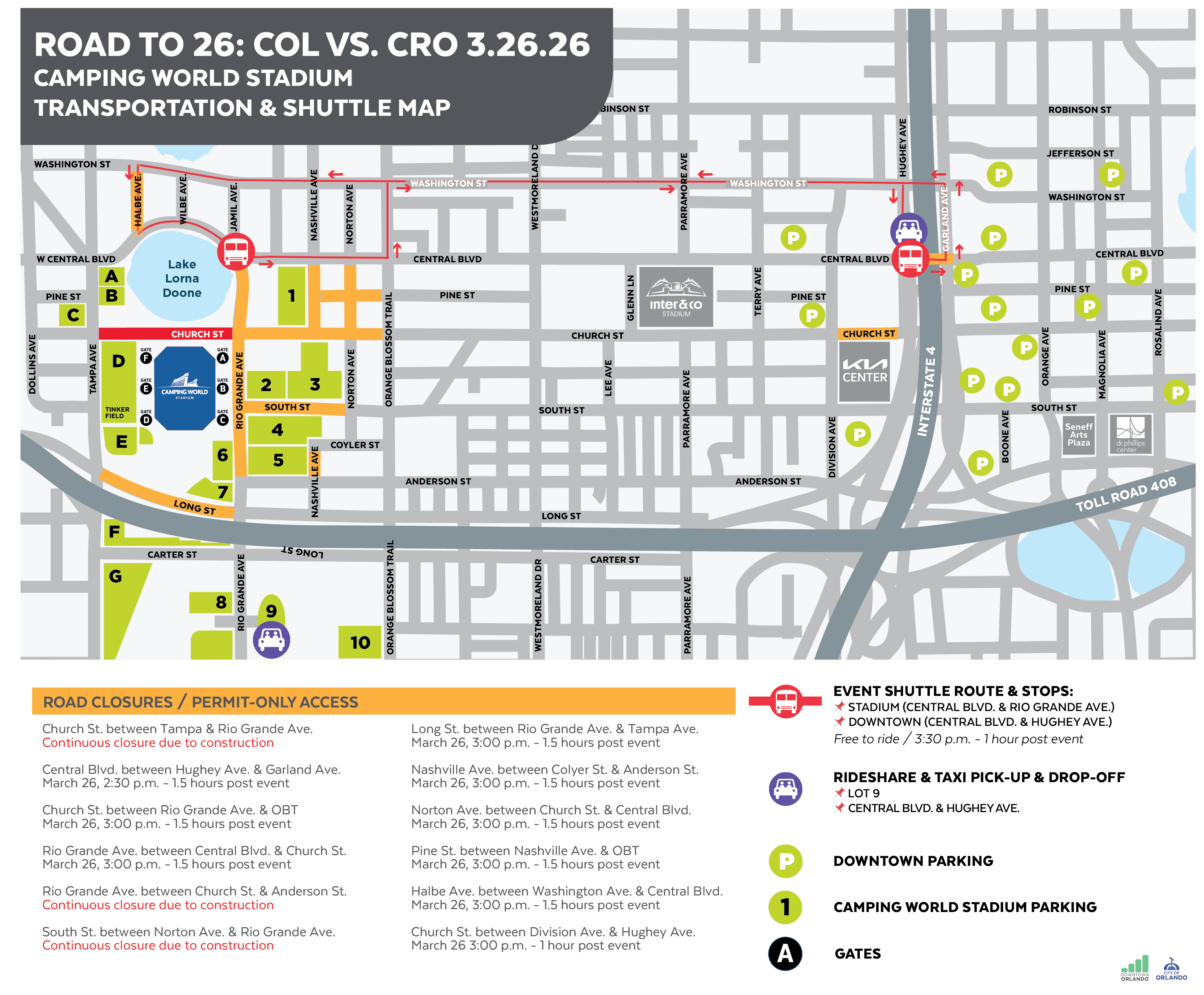 Croatia and Colombia take over Camping World Stadium on June 14 for an electrifying night of international soccer! This event guide has everything you need from shuttle maps and parking updates to gate times and prohibited items.